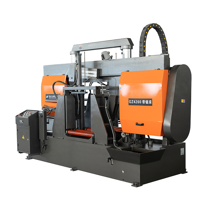 旋轉角度帶鋸床是一款高精度、高效率的金屬切割設備,它在傳統臥式鋸床的基礎上進行了創新升級,增加了高精度的可控旋轉功能。這一核心功能使設備能夠直接加工出高質量的斜切面工件,省去了二次加工的環節,不僅提高了生產效率,還顯著降低了加工成本。