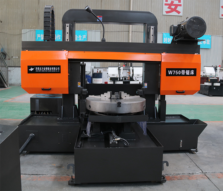 金鋒鋸業生產的大小輪系列帶鋸床專為鋸切型材設計,保證導向精度,鋸削穩定可靠。采用全方位液壓夾緊,鋸切下來的工件不會松動,避免打齒、壓損鋸帶,保護鋸帶。主傳動采用蝸輪蝸桿減速機,動力強勁,性能可靠,經過精密平衡校正,運轉平穩可靠。