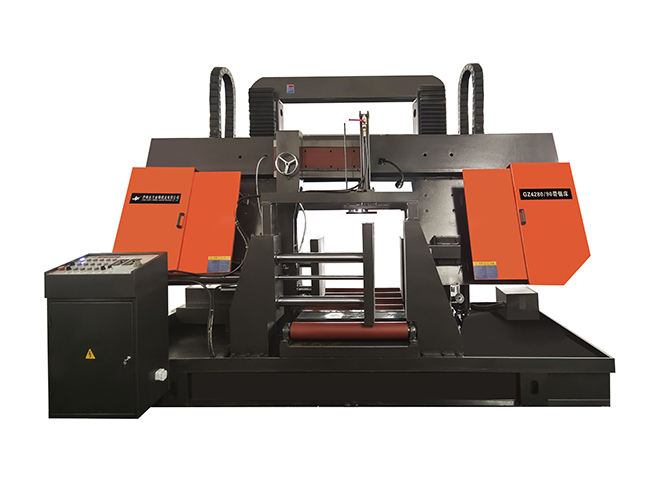 1.雙鉗雙壓 GZ4280-90 臥式龍門帶鋸床為雙立柱龍門線軌結構,獨立的潤滑泵,雙鉗雙壓,保證導向精度,鋸削穩定可靠。