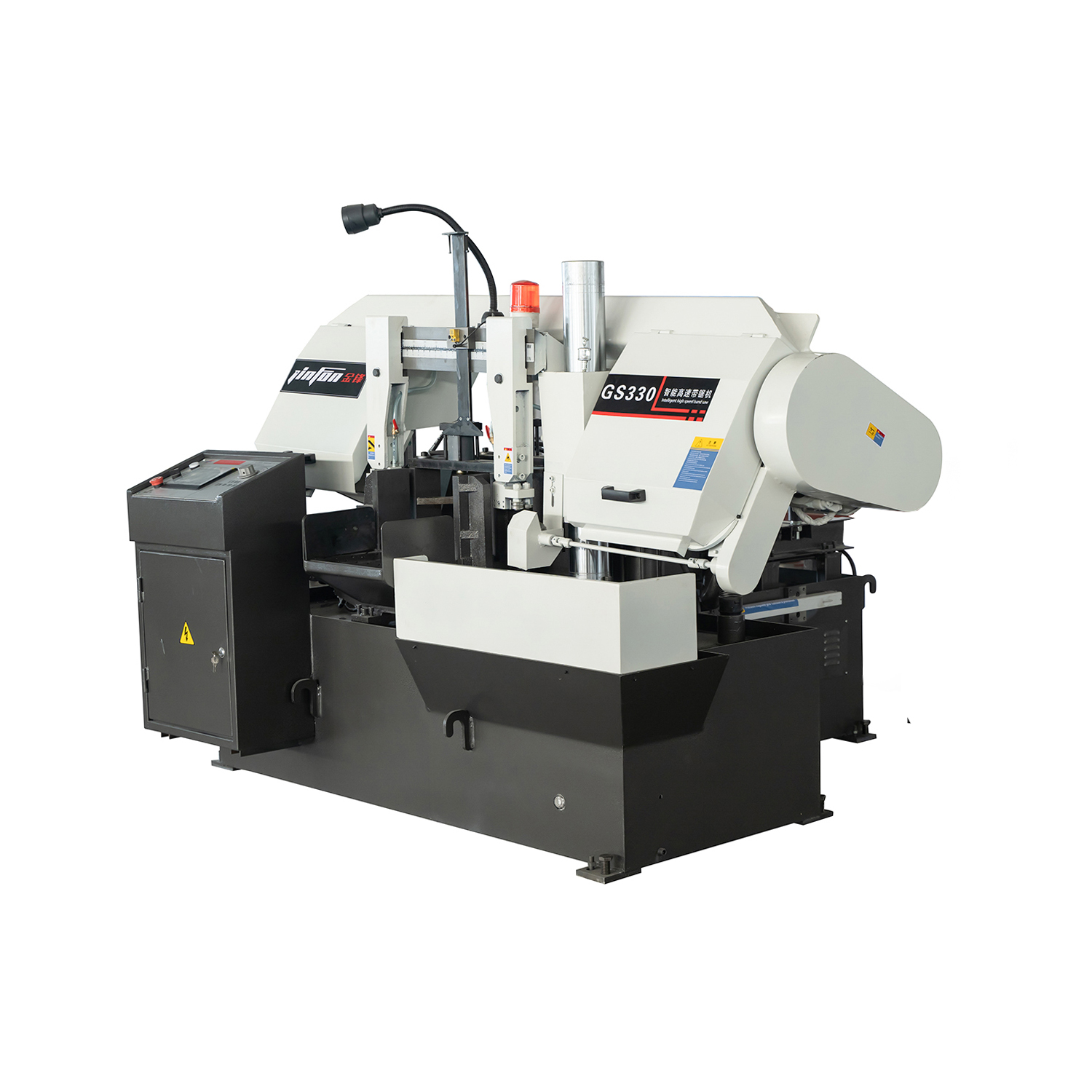 GS330數控帶鋸床的基礎功能:自動送料、自動檢測、全程監控、自動鋸切、自動清潔等保障了高效率生產,鋸床鋸切穩定,切割精度高,故障率小,對帶鋸條的壽命約有40%以上的提升,其全自動一體的生產模式也成為了企業的可靠伙伴!GS330數控帶鋸床由彩色觸摸屏顯示,在屏幕上設置好合適參數后鋸床即投入自動鋸切工作,可一人同時操控多臺,GS330數控帶鋸床主要用于鋸切長寬在330mm內的單一或成捆工件,GS330數控帶鋸床的控制程序智能、生產模式高級、功能選項多樣、鋸切水平一流、科技含量領先、操作簡單移上手,鋸床的生產效率與切割效果超出理想,是金屬鋸切行業中的卓越設備。