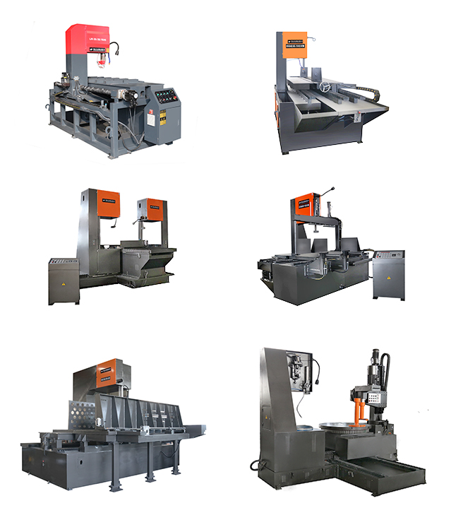 采購立式帶鋸床時,金鋒鋸業技術人員會為客戶提供往期立式鋸床銷售案例,并為您推薦合適設備,通常大型立式帶鋸床的應用還是更較為普遍的,可以鋸切各種較大尺寸、較長尺寸的金屬管材、棒料、方料、鋼胚、碳鋼、不銹鋼、鋁板、鋁冒口、石墨、橡膠、碳素、皮革、注塑模具、模胚、塑料......立式帶鋸床的鋸切范圍、占地面積、鋸切性能、功能模式均可為客戶定制,大型立式帶鋸床的鋸切范圍大、占地面積大、承重大、動力強勁;相反小型立式帶鋸床鋸切范圍小、占地面積小、方便移動,主要針對解決客戶對獨特工件的鋸切難題。