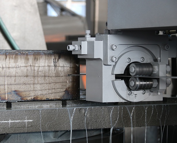 根據(jù)客戶的要求,金鋒鋸業(yè)為其量身打造了工作臺(tái)可360°回轉(zhuǎn)定位的多功能大型數(shù)控帶鋸床,主要解決客戶對(duì)有色金屬、中、低碳鋼的高效鋸切。這一臺(tái)大型數(shù)控帶鋸床GZK10150S采用了雙立柱龍門式結(jié)構(gòu),鋸切穩(wěn)定、鋸口窄、鋸切精度高、自動(dòng)化程度高、節(jié)能省力、生產(chǎn)效率非常快。