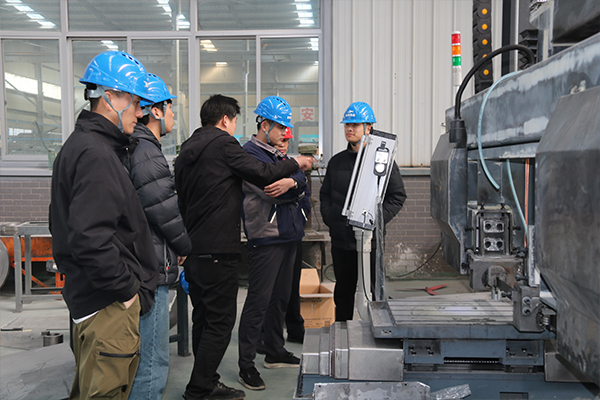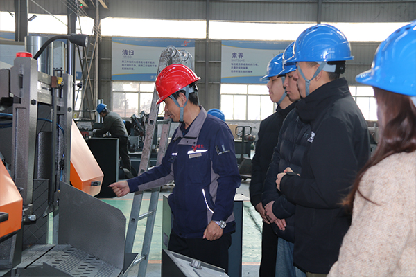 郭總首先從帶鋸床的不同類型、結(jié)構(gòu)原理以及不同類型帶鋸床的性能特點(diǎn)、重要技術(shù)參數(shù)入手,用多年的工作經(jīng)驗(yàn)和通俗易懂的語言進(jìn)行了詳細(xì)解說。為了使新員工更直觀地理解帶鋸床工作原理,郭總還讓相關(guān)技術(shù)人員啟動(dòng)機(jī)器,親自上手實(shí)操,并對(duì)帶鋸床運(yùn)行的相關(guān)步驟進(jìn)行了重點(diǎn)講解和示范。