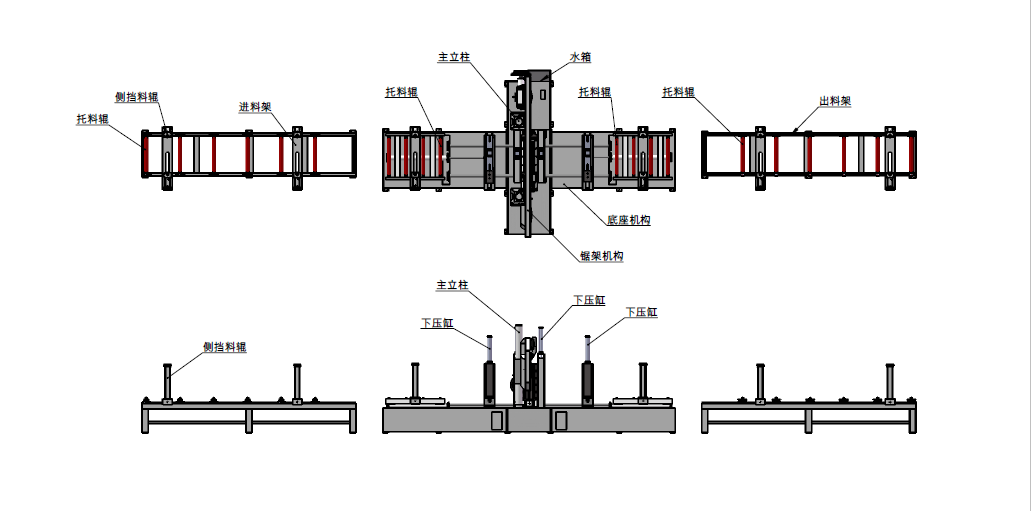 (8)進出料道各有四米長滾筒料架。