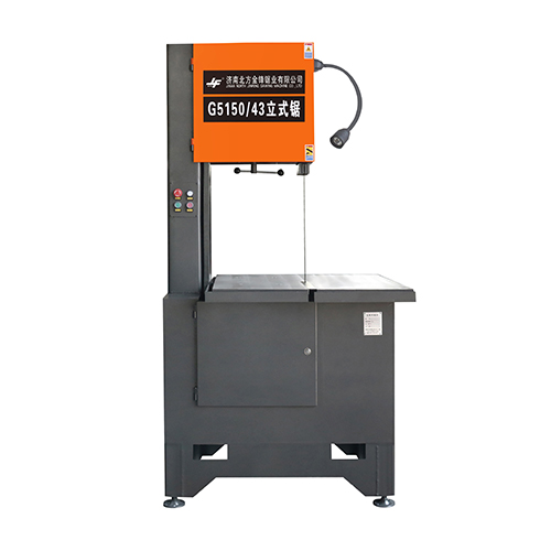 立式帶鋸床G5150/43的詳細技術參數: 1.鋸床的最大鋸削規格: 喉深430mm/高度:500mm 2.帶鋸條規格: 27×0.9mm 3.鋸床主電機功率: 3KW,380V,50Hz 4.鋸床主傳動方式: 三角帶傳動 5.帶鋸條線速度 200-800m/min(變頻調速) 6.鋸床除塵: 預留3個φ80除塵口 7.鋸床工作臺尺寸: 850×850mm,鋸條居中放置 8.鋸床工作臺高度: 約990mm